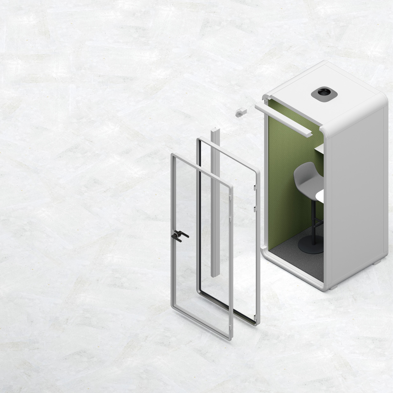 Avec des panneaux muraux composites, du verre feuilleté et une structure d'étanchéité à double couche, la cabine insonorisée ZUM atteint une réduction du bruit de parole de plus de 29 dB lors de tests conformément à la norme ISO 23351-1:2020. Il bloque efficacement les bruits extérieurs et protège la confidentialité des appels et des réunions, ce qui convient aux secteurs hautement confidentiels tels que les services financiers et juridiques. À l’intérieur de la cabine, un ventilateur centrifuge et un système de ventilation à pression équilibrée assurent un échange d’air automatique chronométré, éliminant ainsi l’encombrement et l’inconfort de la pression auditive pour un confort amélioré lors d’une utilisation prolongée.